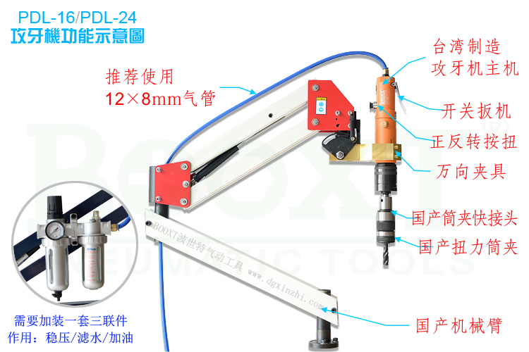 1、BOOXT PDL-16氣動(dòng)攻牙機(jī)主機(jī)×1臺(tái);