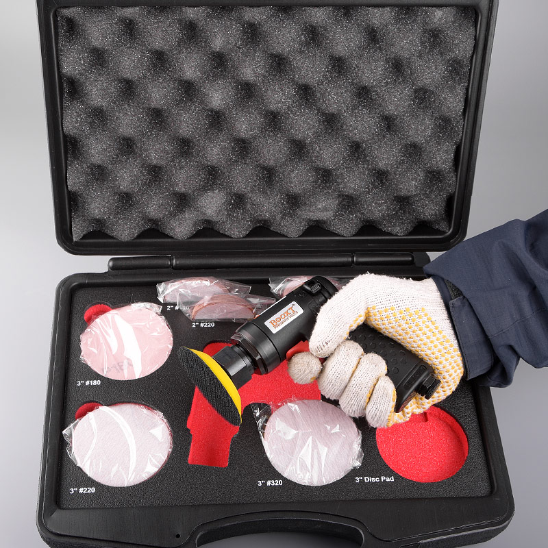 1.帶偏心式,裝砂紙打磨出來的效果是“霧”狀,帶細(xì)小亂絲的小紋路,適合后工藝需要做噴砂、烤漆,增加附著力。(標(biāo)配一般為3mm偏擺,可選配1.5mm,0.75mm偏擺度)
