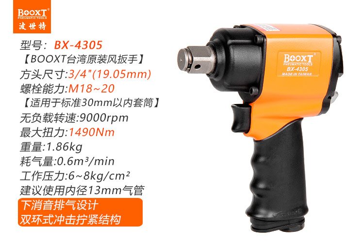 東莞市強(qiáng)勁五金工具有限公司提供臺灣BOOXT波世特品牌氣動(dòng)工具,中型風(fēng)炮BX-4305廠家直銷,首件享特價(jià)。咨詢熱線:4008301980
