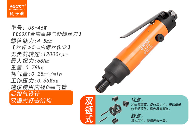 東莞市強(qiáng)勁五金工具有限公司提供臺(tái)灣BOOXT波世特品牌氣動(dòng)工具,氣動(dòng)螺絲刀US-46W廠(chǎng)家直銷(xiāo),首件享特價(jià)。咨詢(xún)熱線(xiàn):4008301980