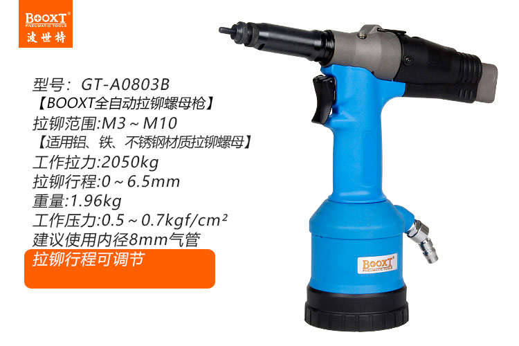 東莞市強(qiáng)勁五金工具有限公司提供BOOXT波世特品牌氣動(dòng)工具,氣動(dòng)拉鉚螺母槍GT-A0830B廠家直銷,首件享特價(jià)。咨詢熱線:4008301980