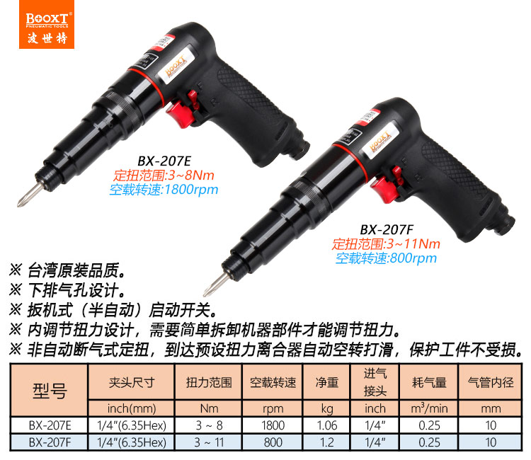 東莞強勁五金工具有限公司提供臺灣BOOXT波世特氣動工具,可調(diào)定扭力風(fēng)批BX-207E廠家直銷,首件享特價。咨詢熱線:4008301980